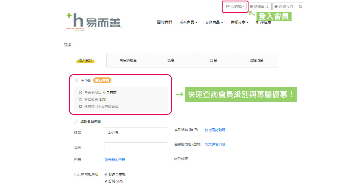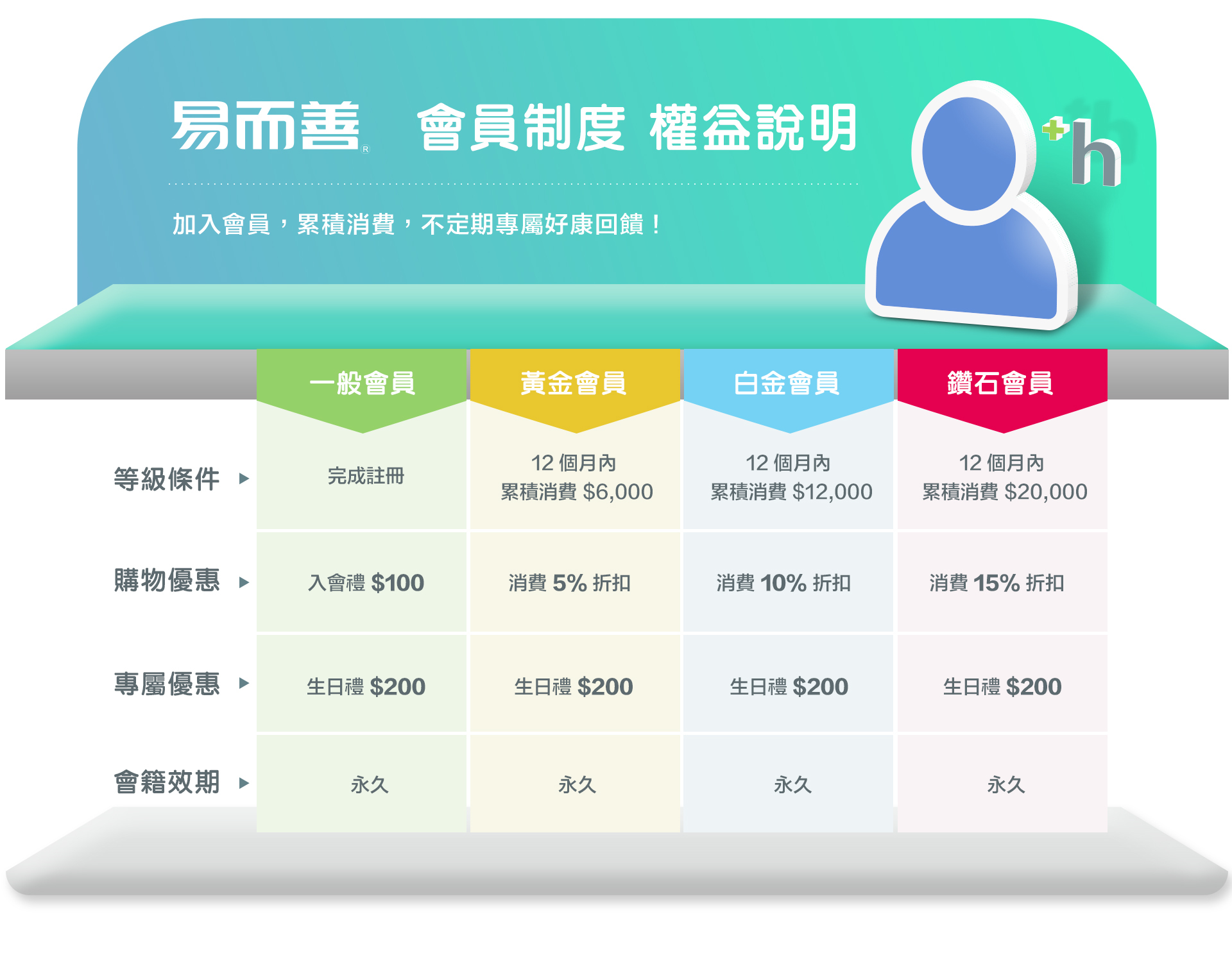 易而善會員,享有永久會籍。並享有生日禮 $200 唷!