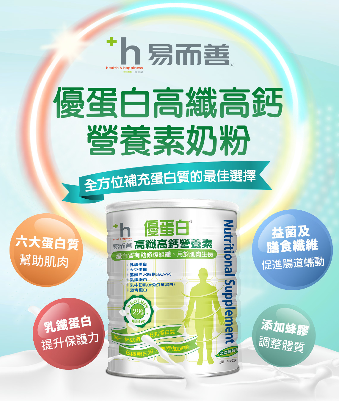 易而善 優蛋白營養配方奶粉,較市售奶粉增加 29.4%蛋白質,體力更加分。