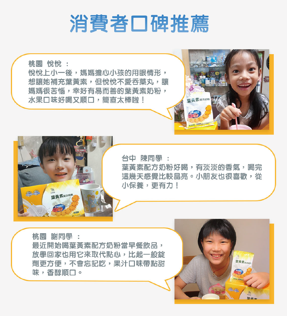 香醇好喝果汁牛乳口味,順口且沒有葉黃素產品常有的草味,各年齡皆適合