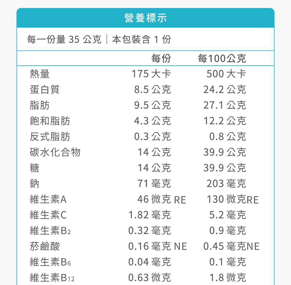 每份含 8.5 公克蛋白質,超過 10 種營養元素