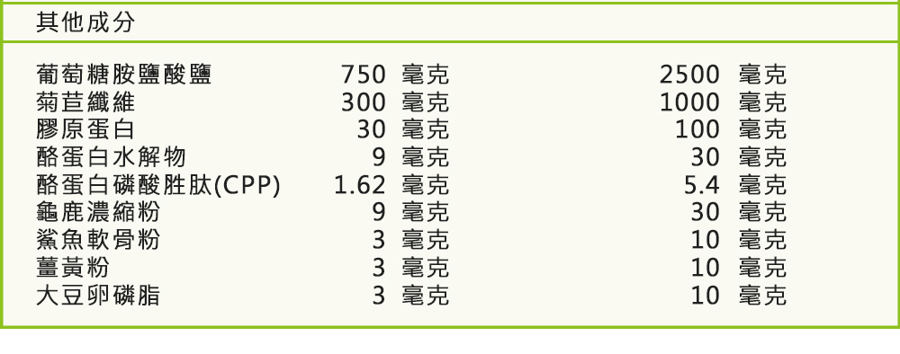 搭配西方科學成分葡萄糖胺、鯊魚軟骨及膠原蛋白,一同維護活動關鍵。