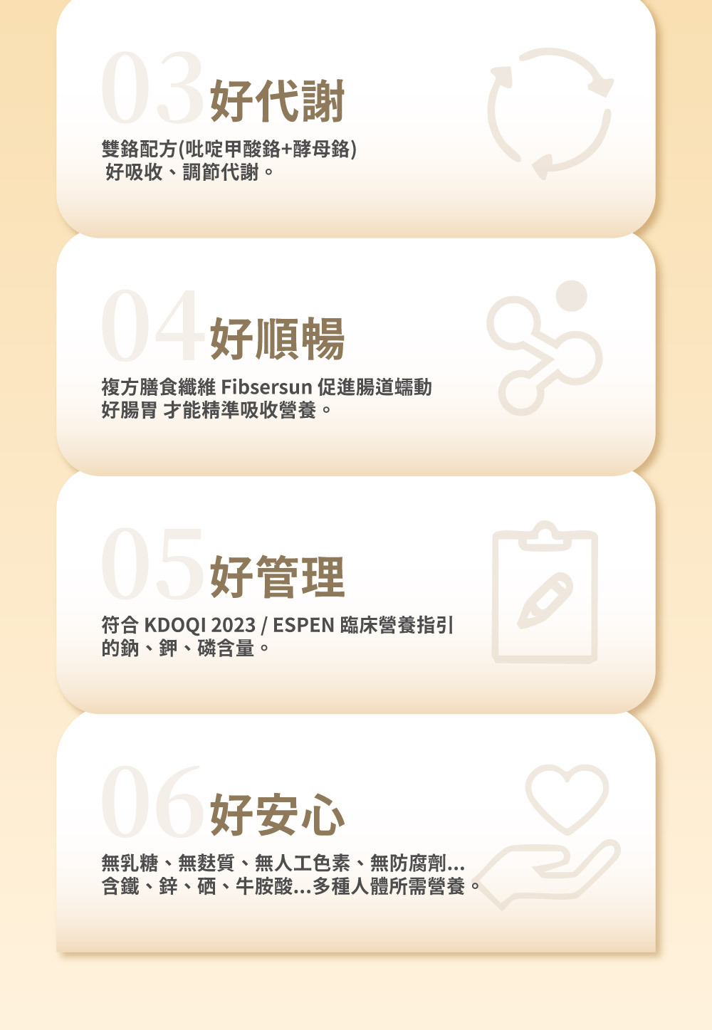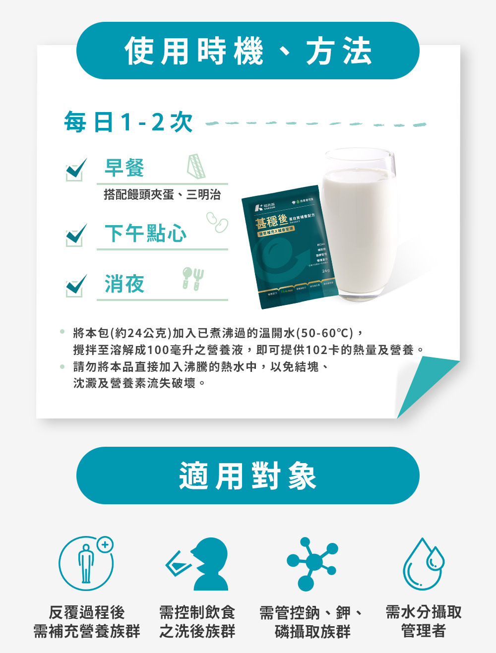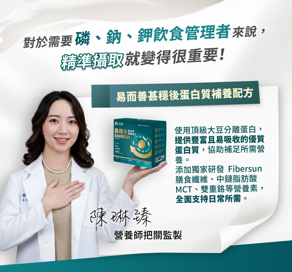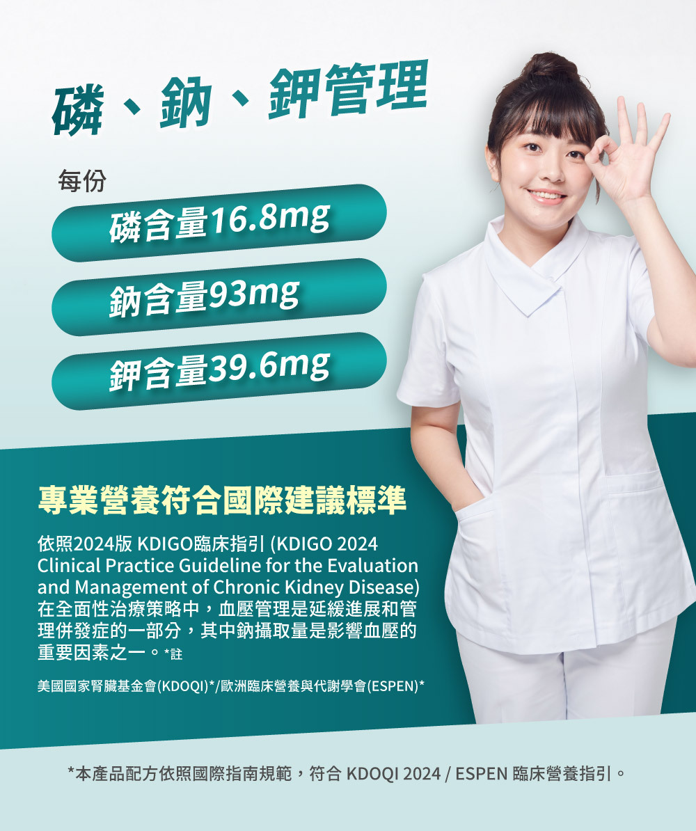 .精準控制|符合國際建議標準量,磷、鈉、鉀精準管理。