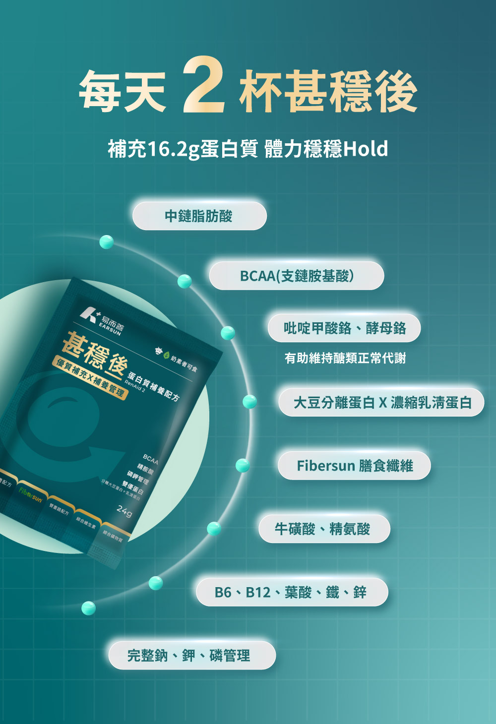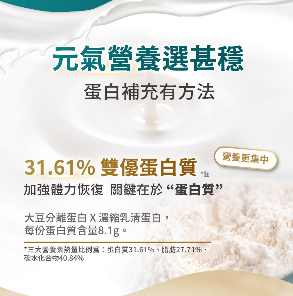 .雙優蛋白|優質大豆分離蛋白,每份 8.1g 補養更有效率。