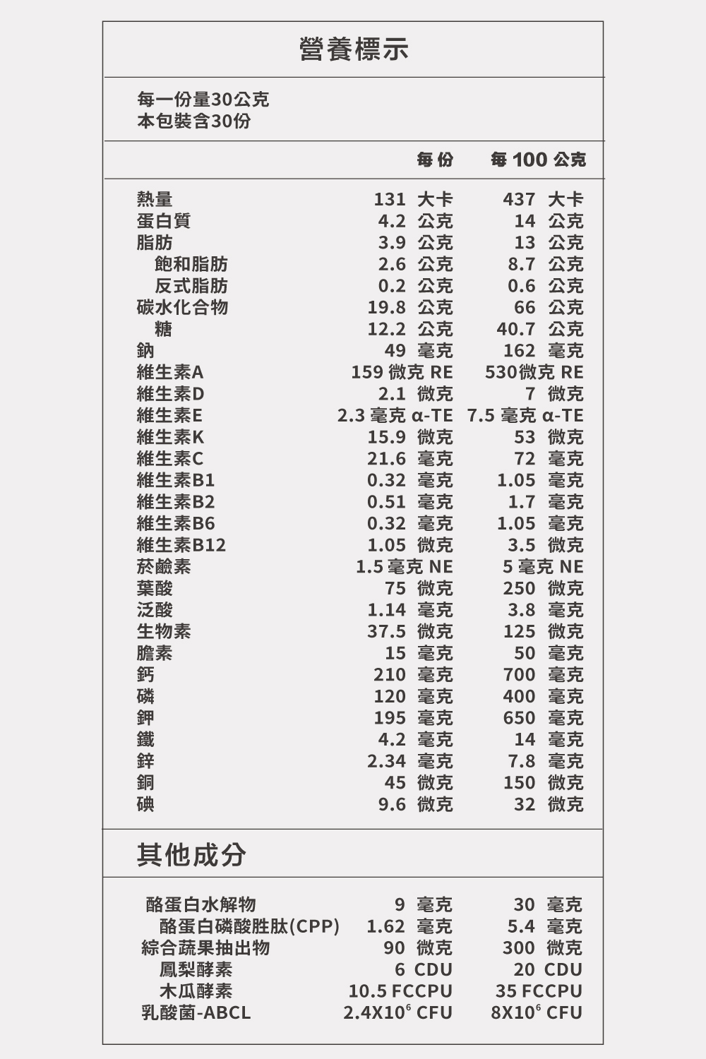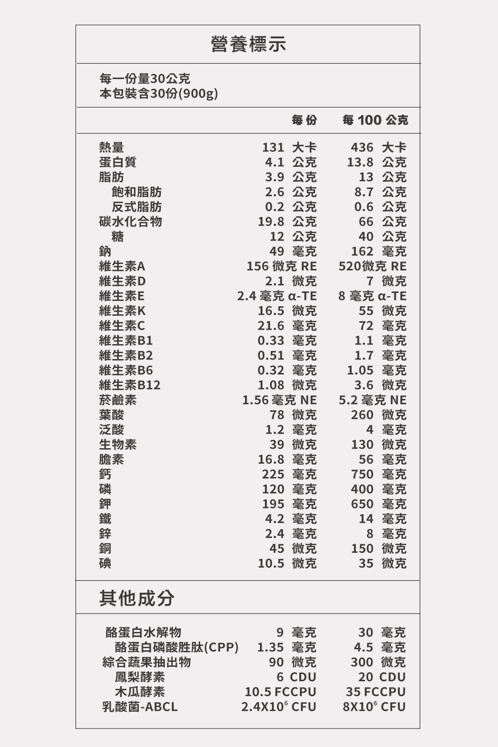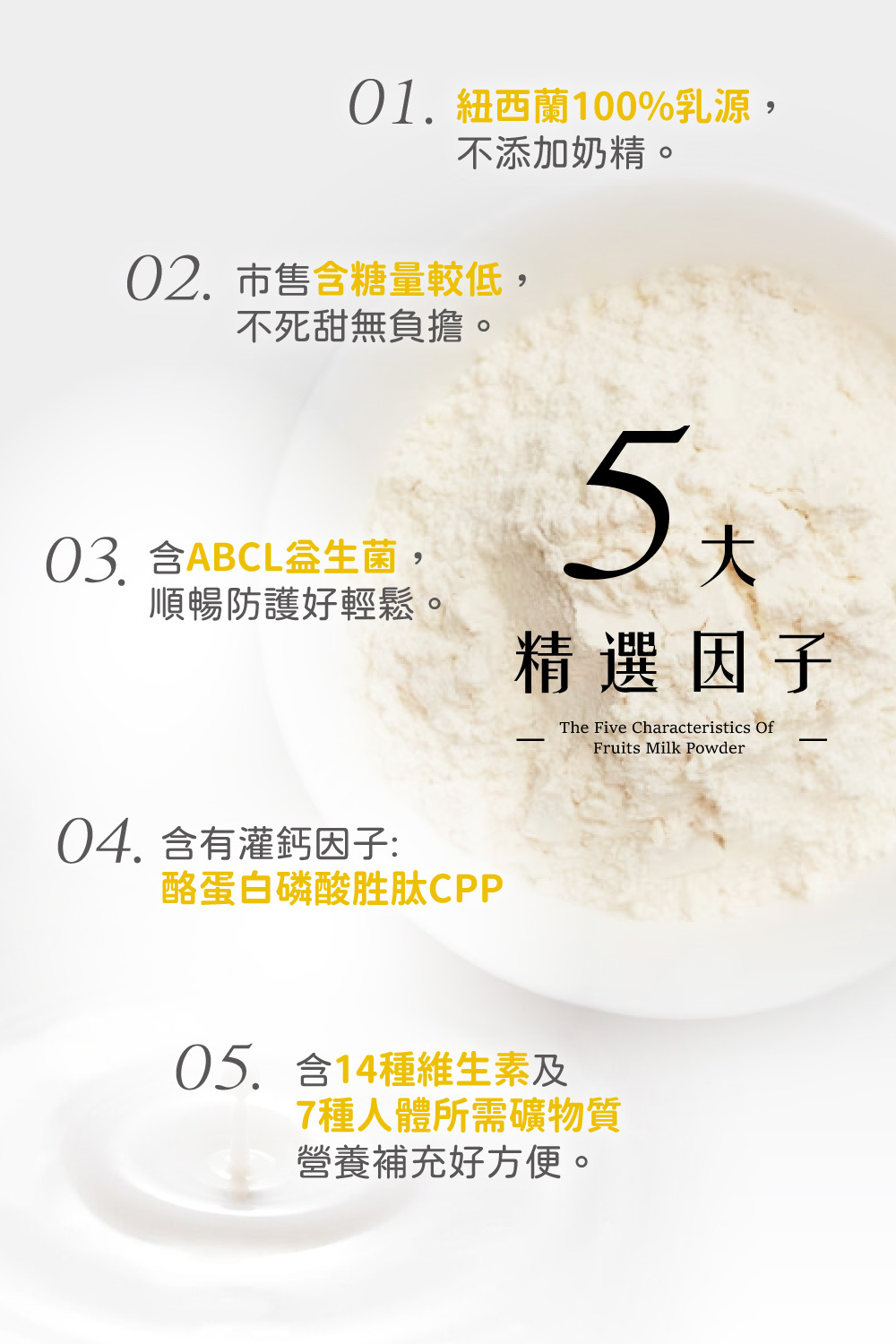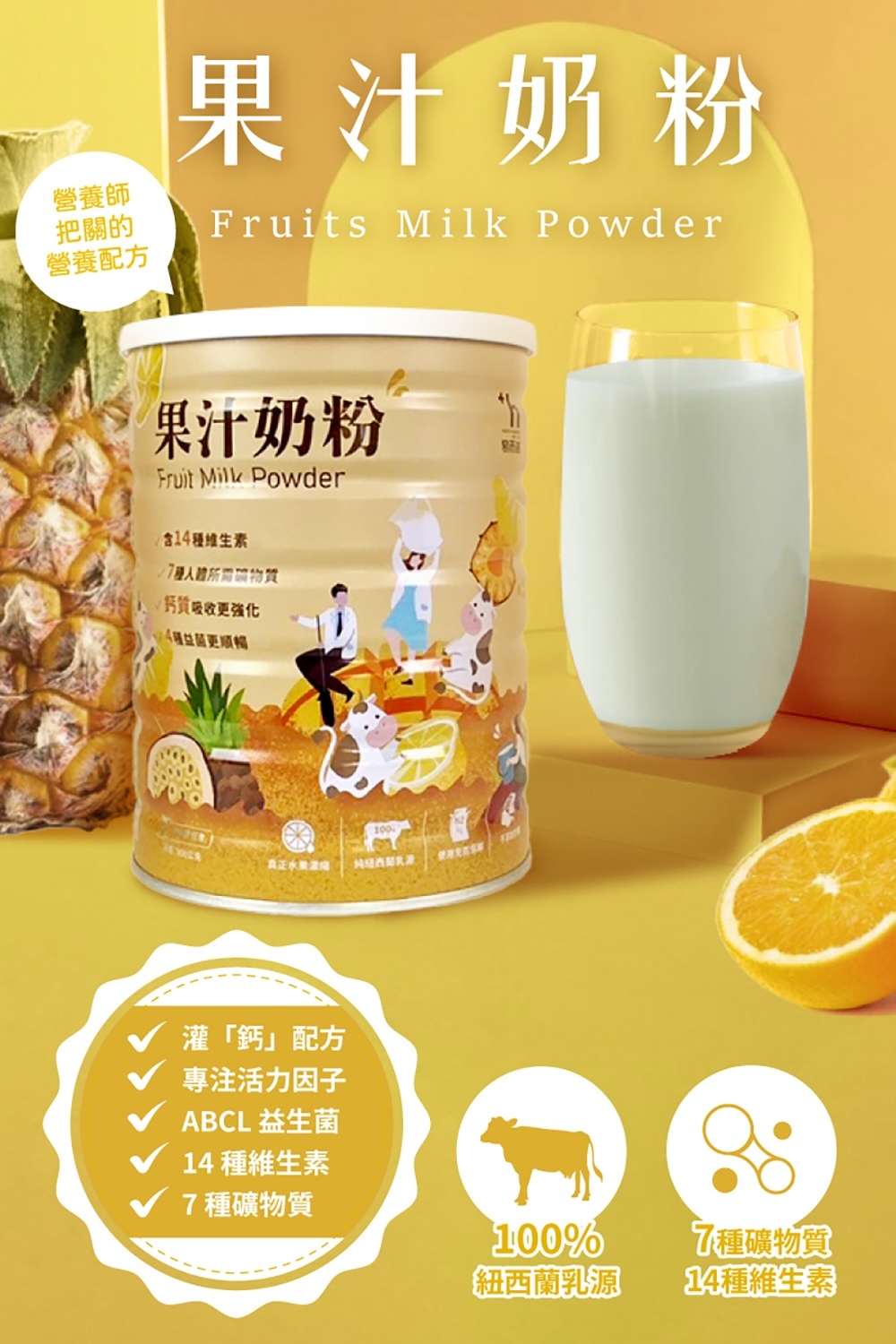 新鮮水果乾燥成粉,搭配高鈣、高鐵及多種維生素及礦物質,