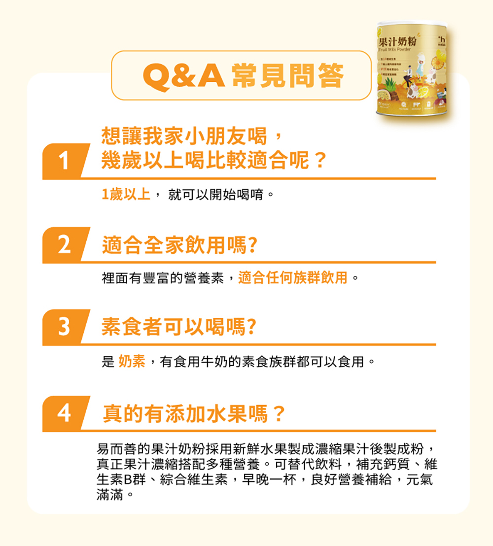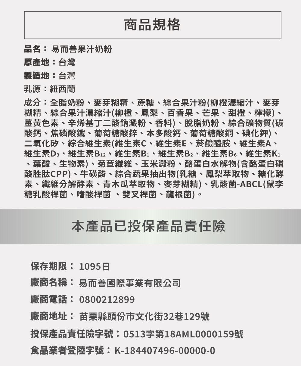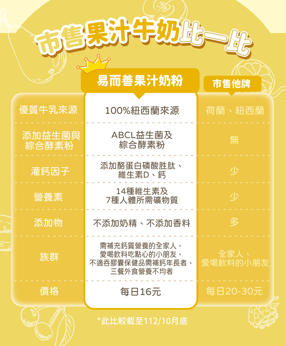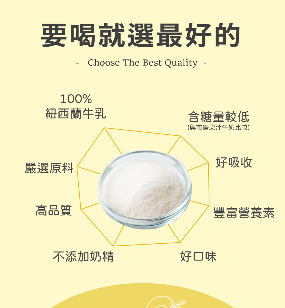 易而善 果汁奶粉,以紐西蘭嚴格品質控管的高品質 100% 紐西蘭牛乳,