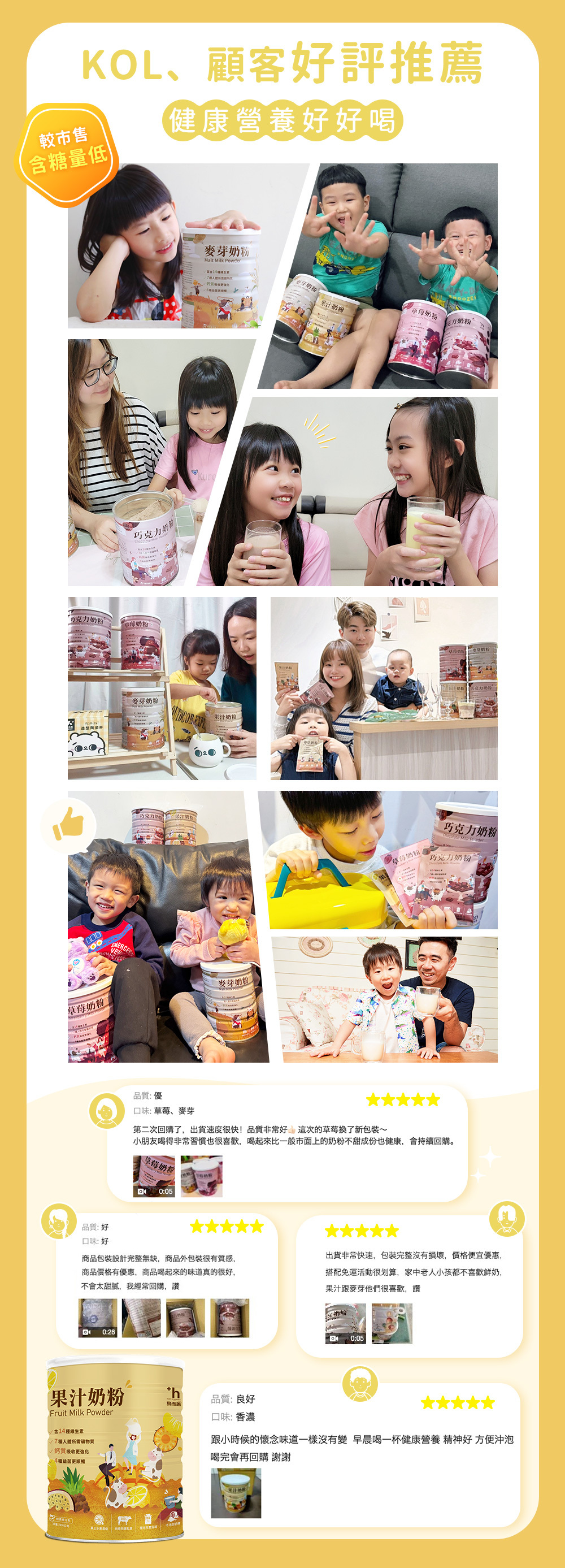 調製而成的綜合果汁調味配方奶粉,35年的經典好滋味,冰冰喝熱熱喝都好喝!