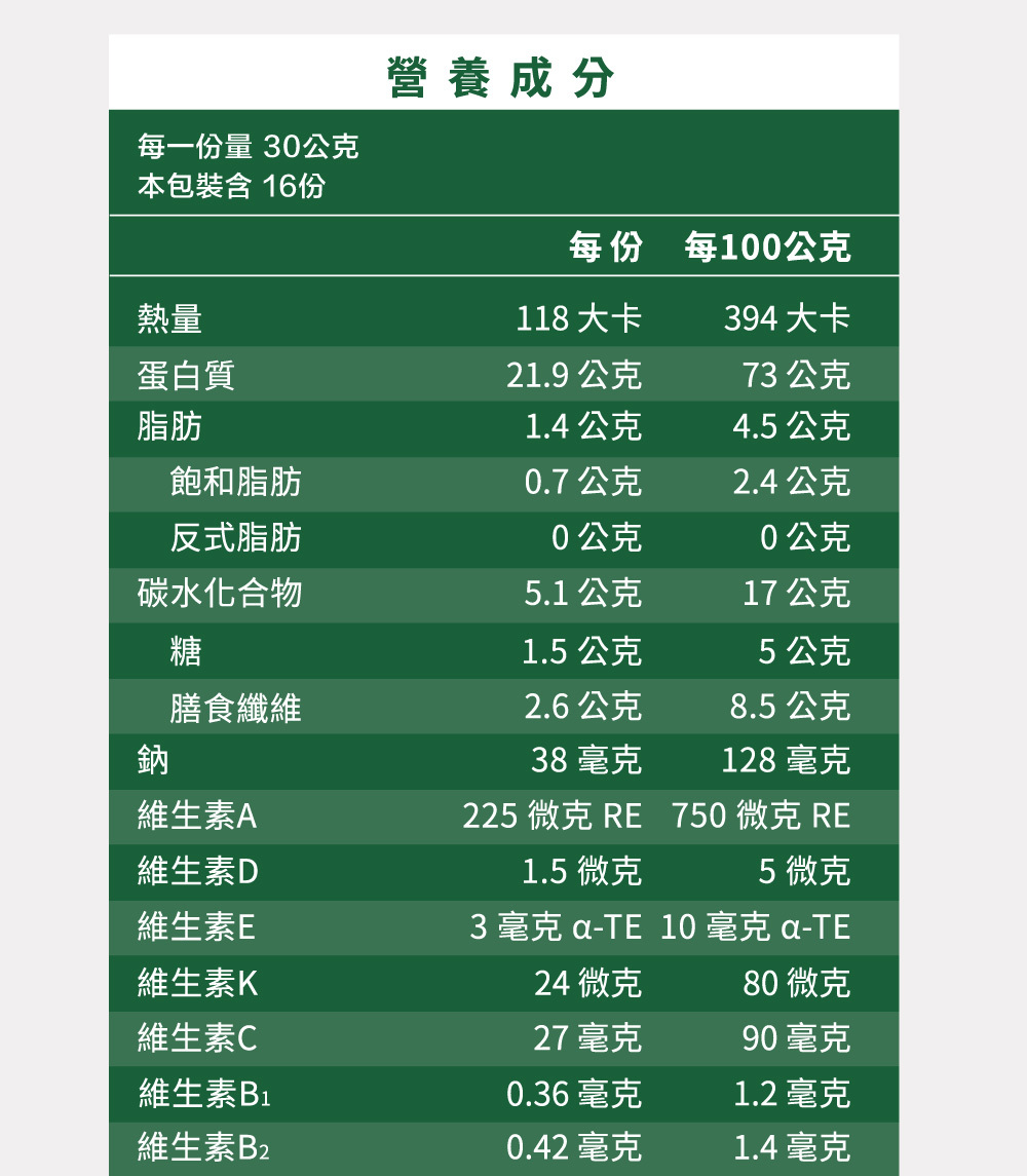 .每份30g (本包裝含16份)