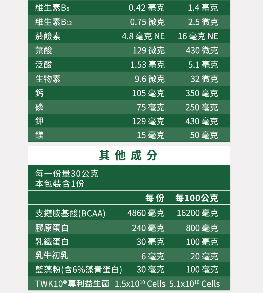 .專利益菌|含150億TWK10益生菌,強化耐力與體質調整。