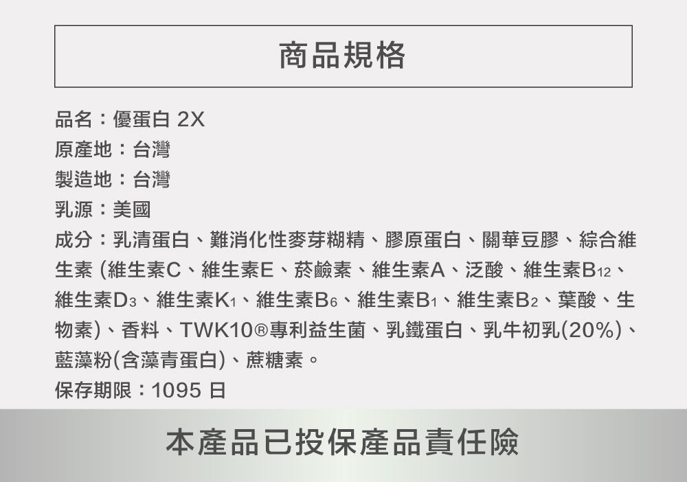 .雙倍蛋白|每份21.9g蛋白,六大蛋白加乘助好體力。