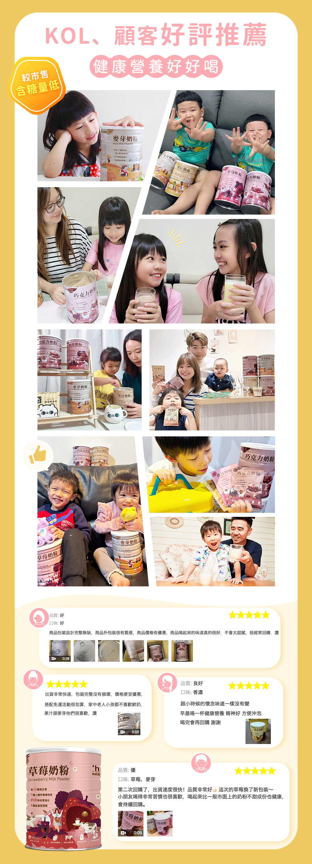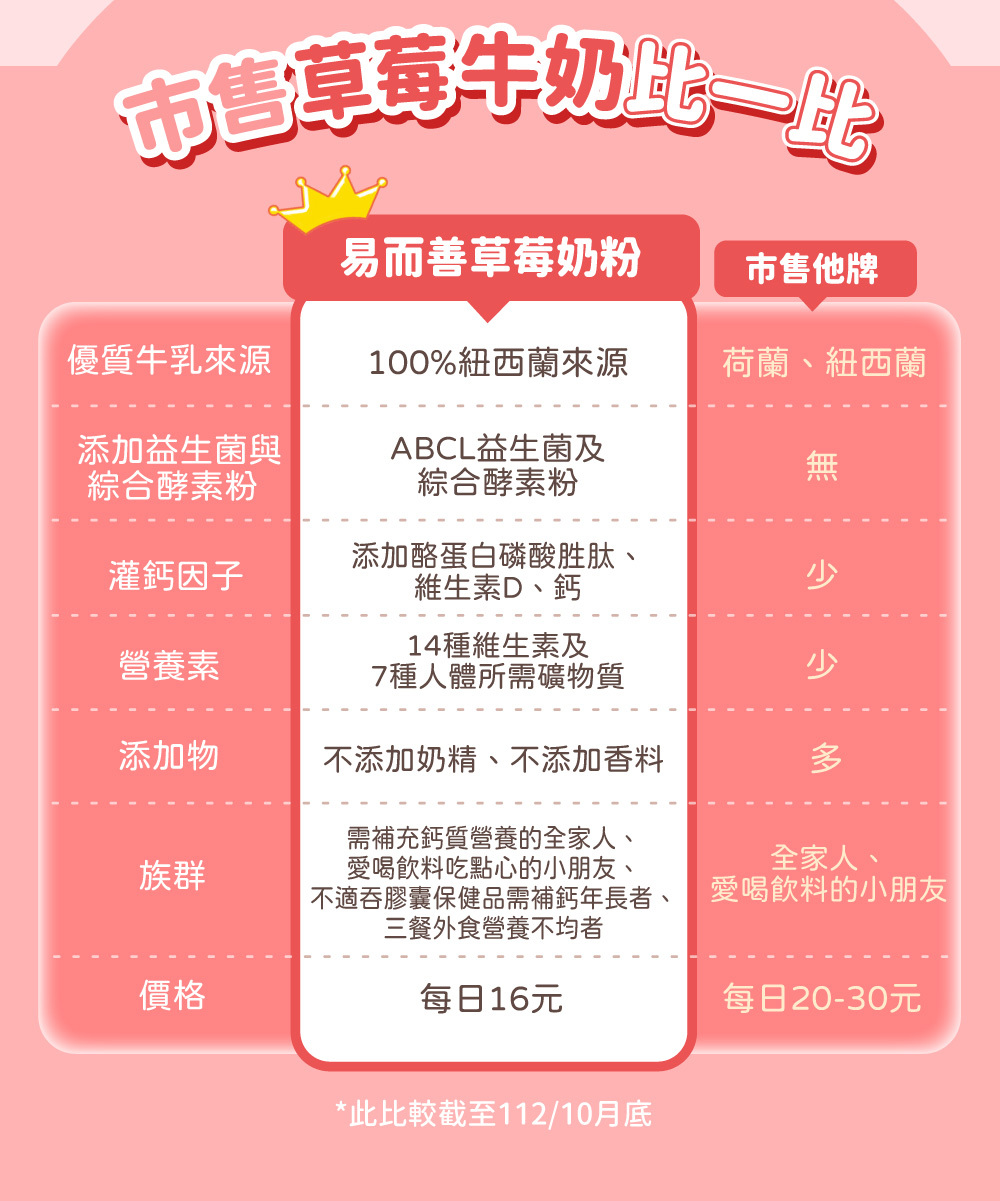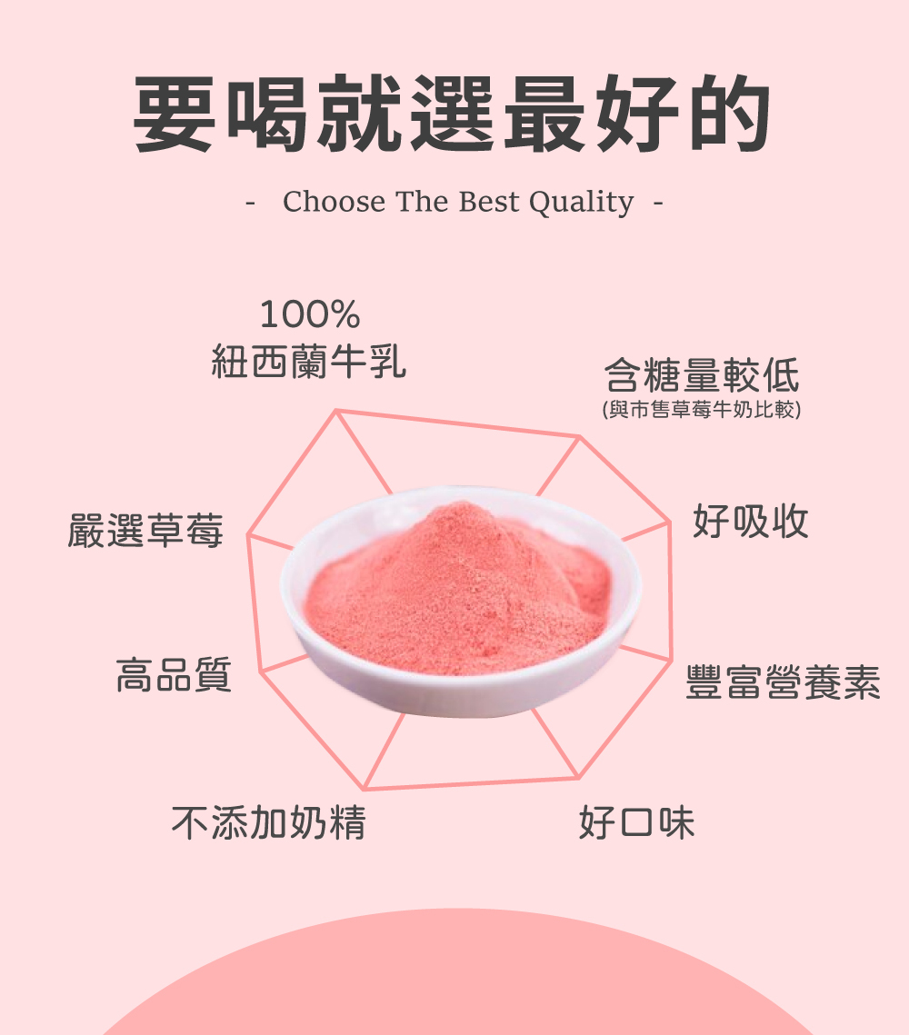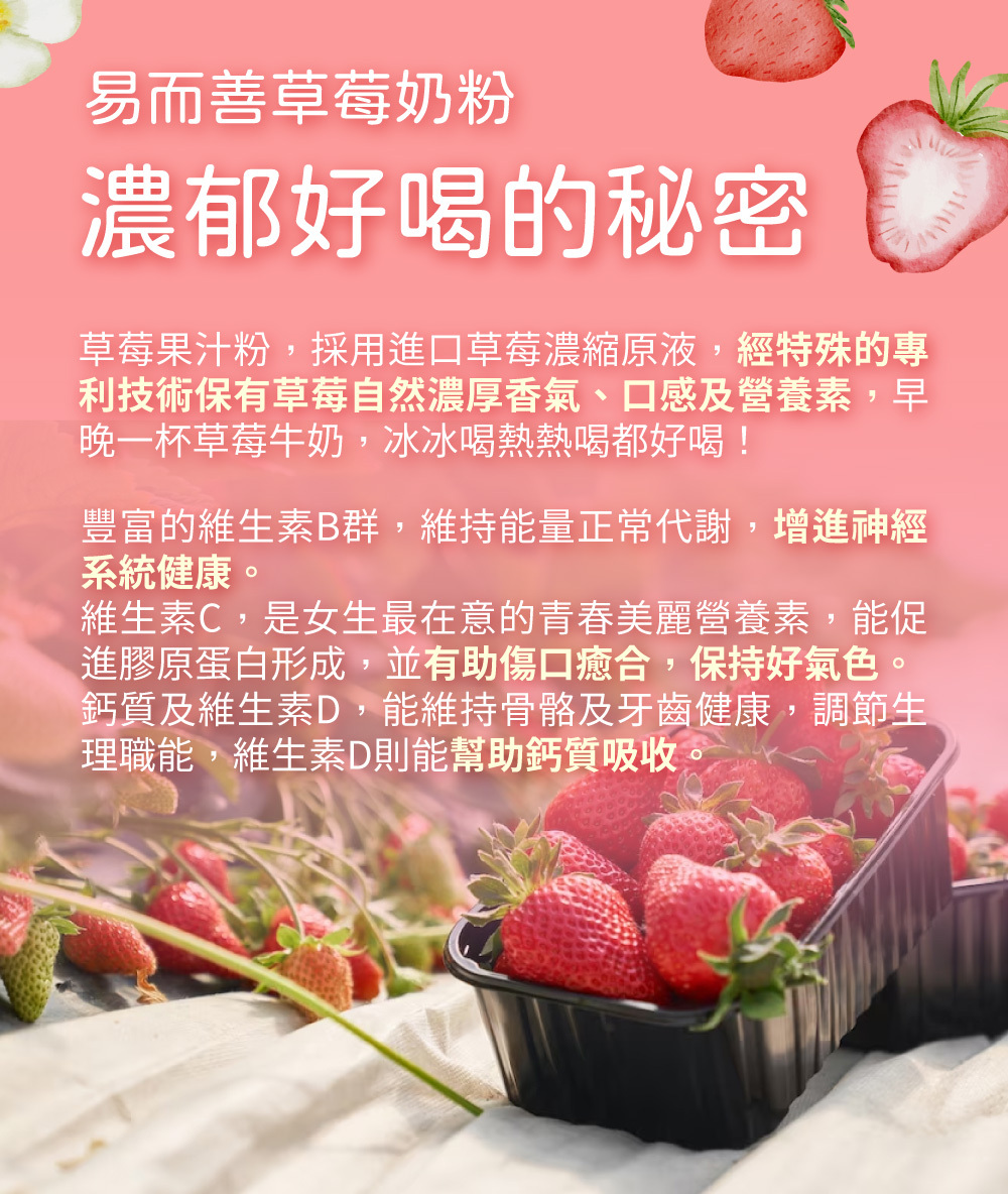 易而善 草莓奶粉,以紐西蘭嚴格品質控管的高品質 100% 紐西蘭牛乳,
