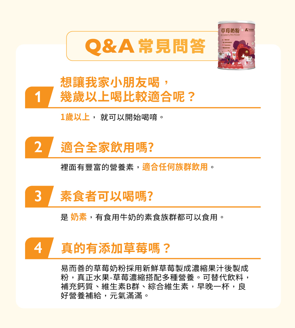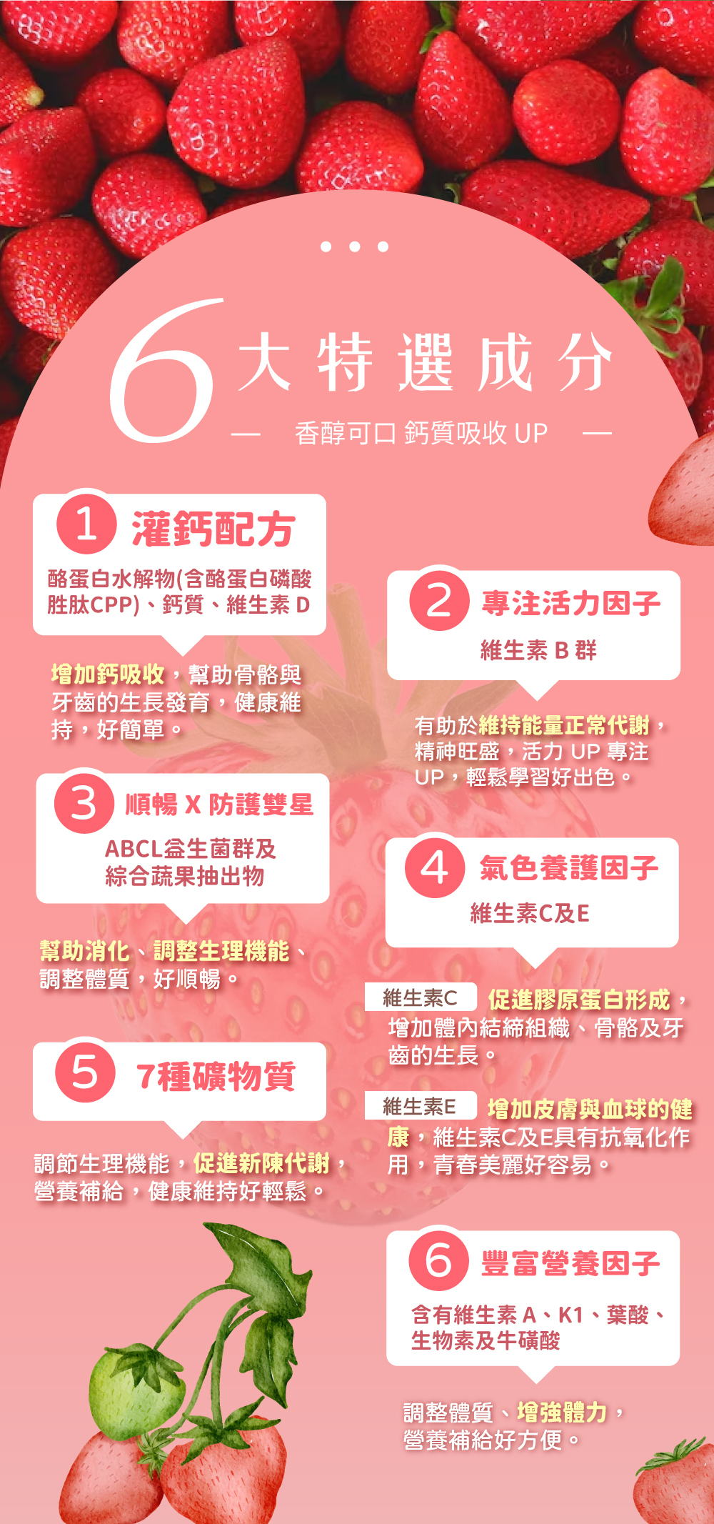 草莓的香甜味加上牛奶的營養,輕鬆補充鈣質及多種營養素